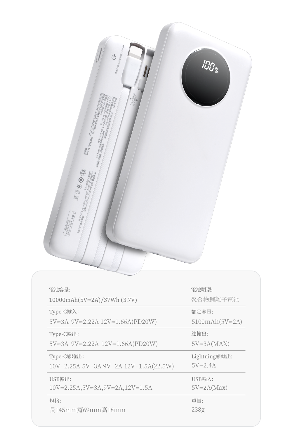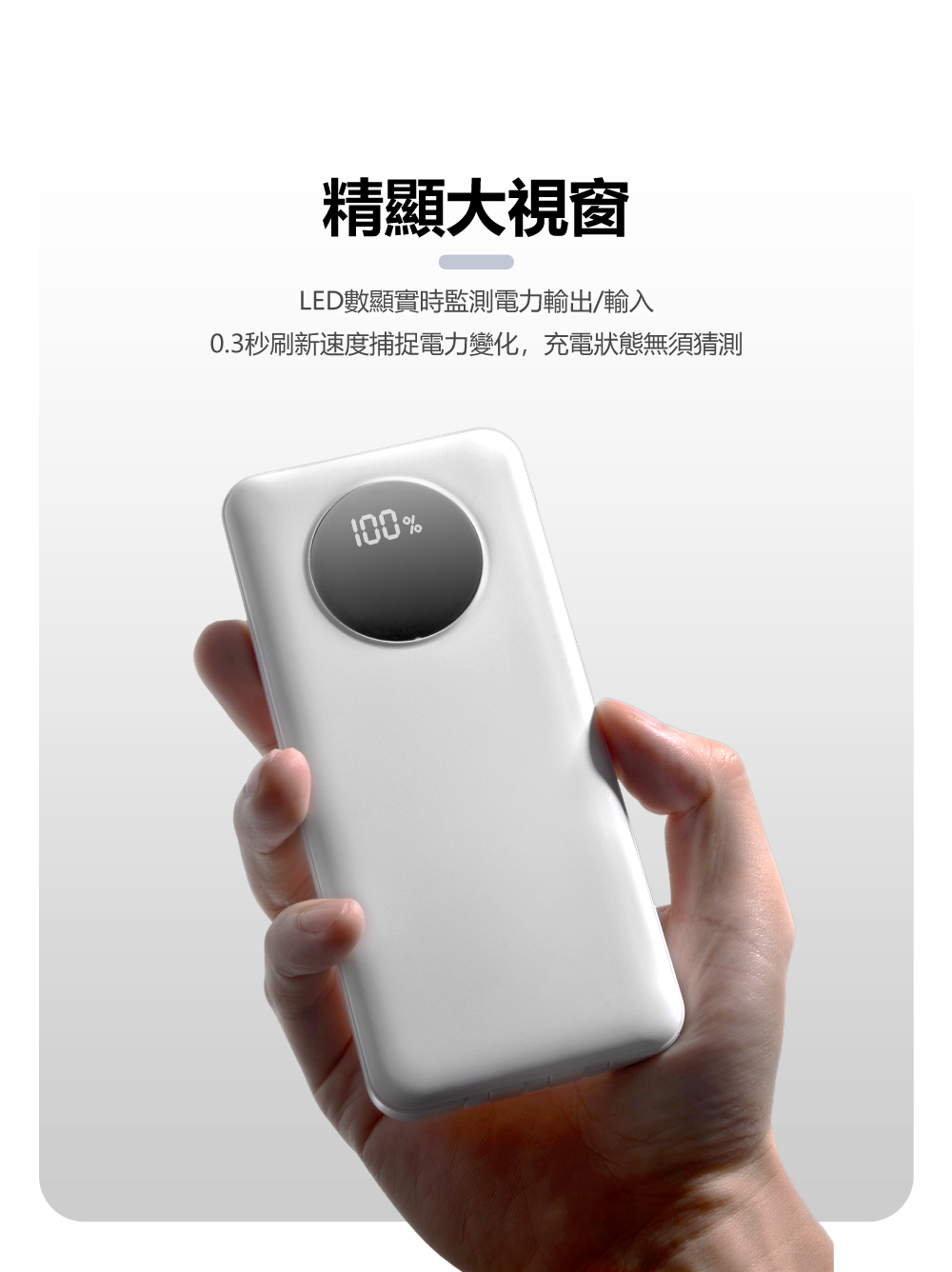 輕薄便攜,隨身能量站:【優化電路板與新片布局】體積僅有傳統行動電源的一半,輕鬆收納進口袋或包包。顯示屏更能讓您時時掌握電力存量,無論是出差、旅行還是日常通勤,都是您最輕便的隨身能量站。